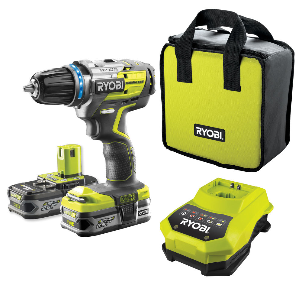 Standardní výbava (R18DDBL-LL25S): 2× 18V 2,5 Ah akumulátor, nabíječka, taška, 1x oboustranný šroubovací bit
